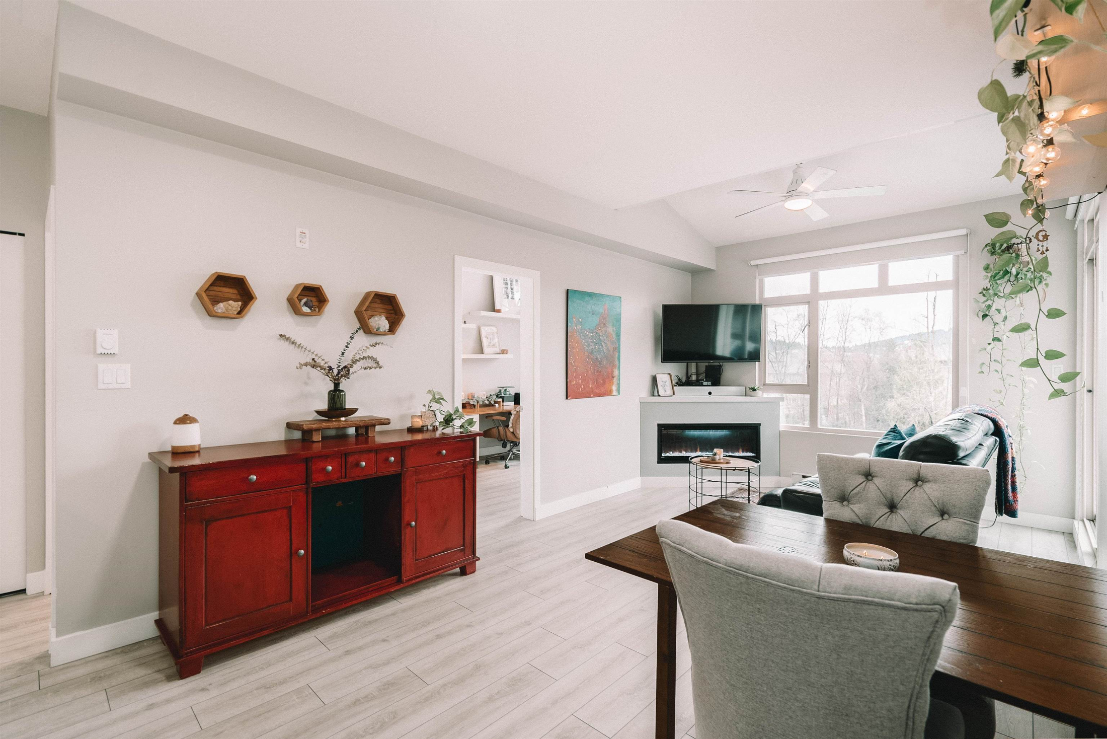 Cozy Living Area: Relax in the spacious living room with a gas fireplace, seamlessly connected to the dining area, creating a warm and inviting atmosphere.